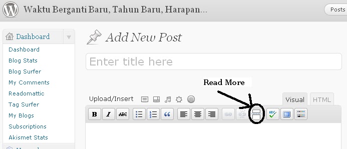 - Buatlah Artikel baru atau edit artikel yang lama dan klik read more (seperti gambar di bawah)